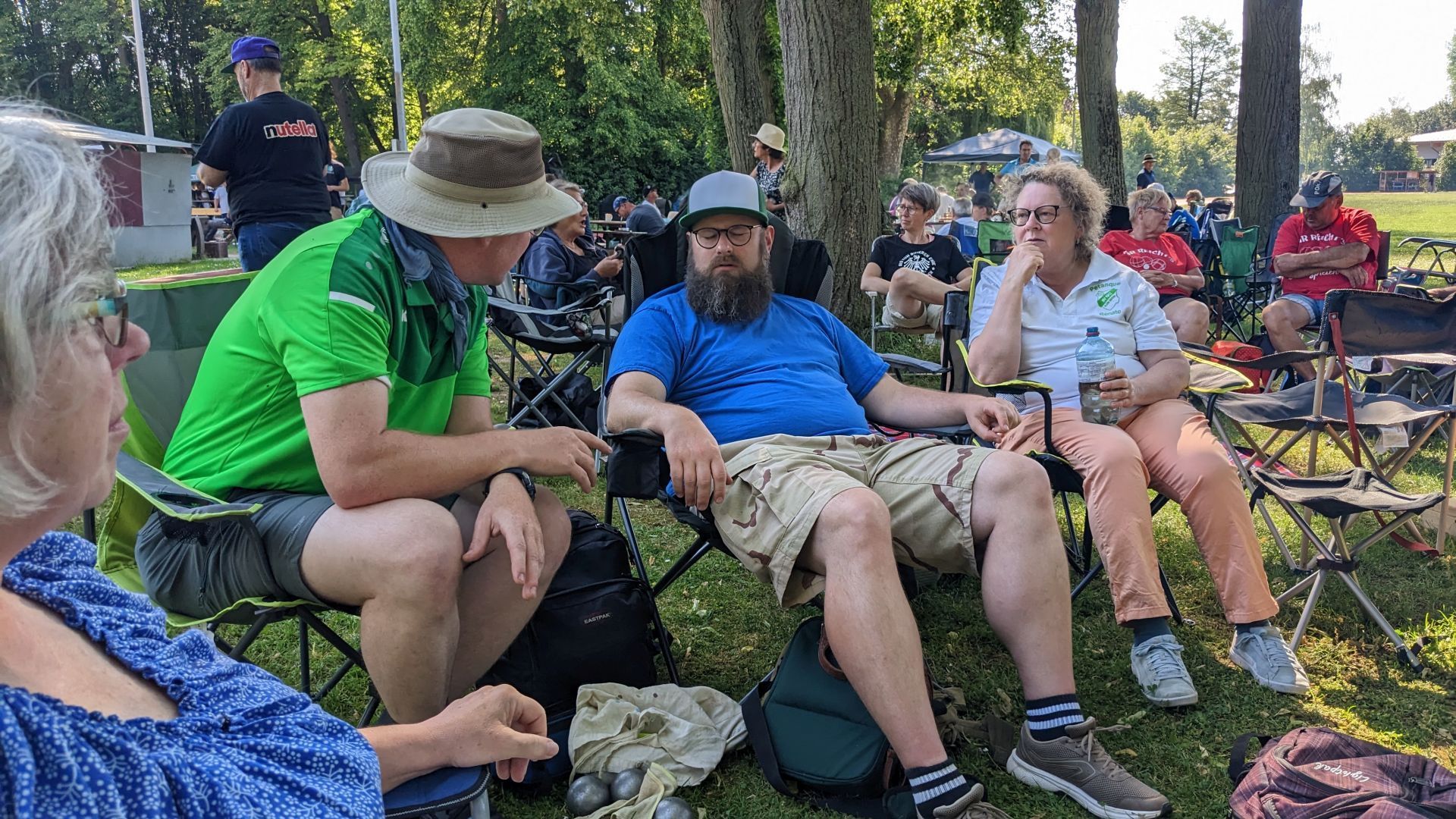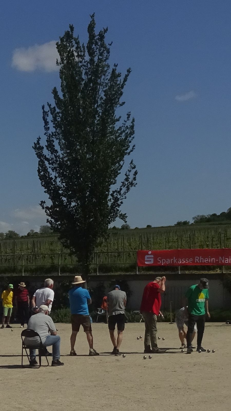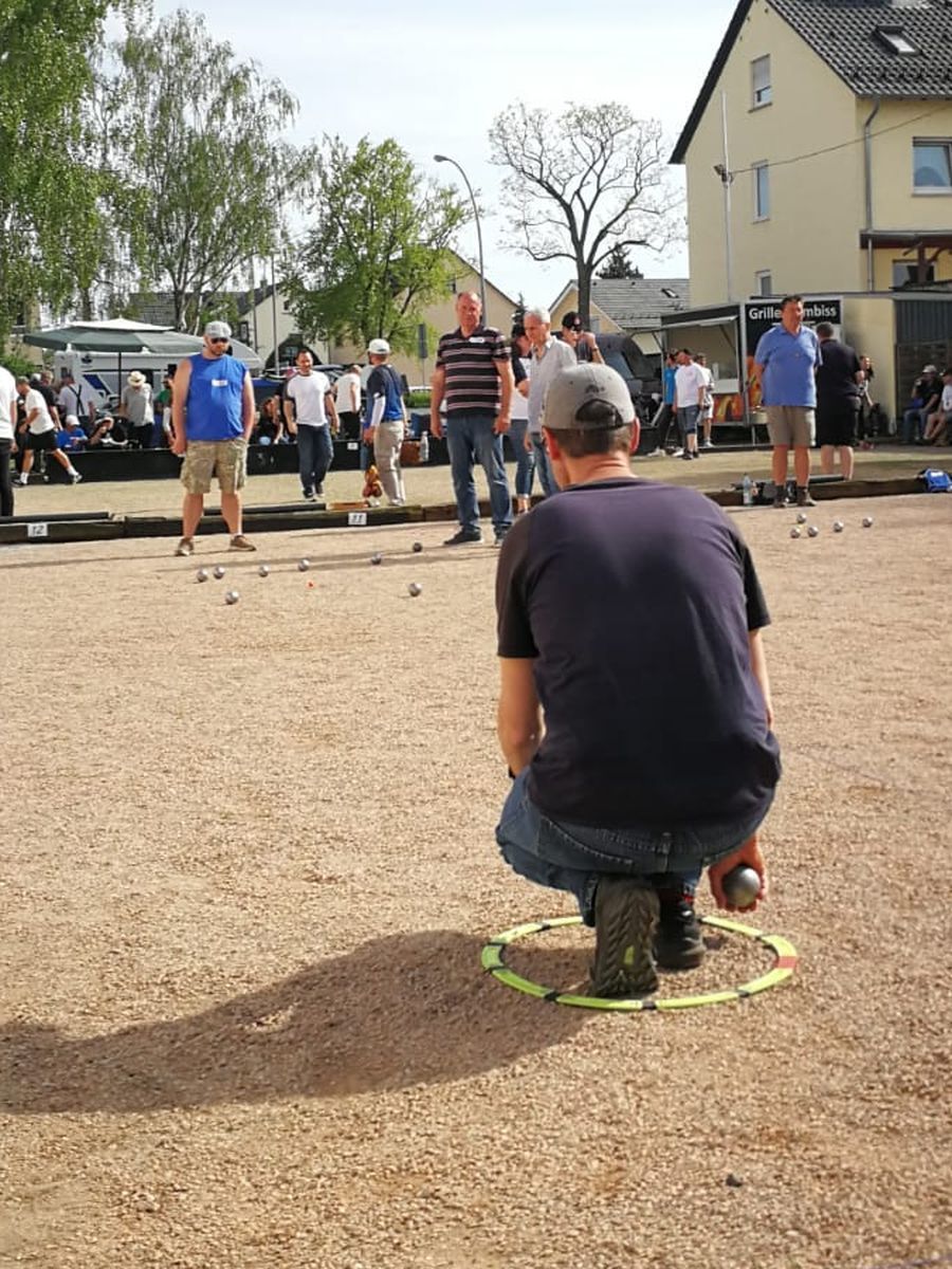 An Christi Himmelfahrt, dem umgangssprachlichen "Vatertag", fand bei strahlendem Sonnenschein in der Rotweinstadt Ingelheim das vom dortigen Verein Boule Rouge organisierte und schon traditionelle Bouleturnier nach Schweizer System mit vier Runden statt. Erfreulicherweise waren von den teilnehmenden 52 Doubletten sechs (!) Teams mit Klein-Gerauer Beteiligung dabei: Berthold/Bernhard, Martin/Uwe, Renate/Hannes, Ralph/Niklas, Walter/Peter und Ernst/Manuel.