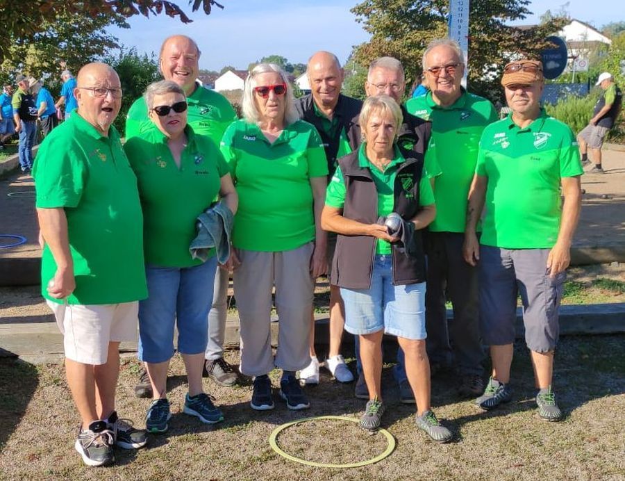 Auch einige große Namen der hiesigen Petanqueszene aus Hessen und RLP waren im Teilnehmerfeld und lediglich vier Mannschaften konnten am Ende vier Siege erringen und standen somit wohlverdient in den beiden Finalen. Unter den Klein-Gerauer Teilnehmern waren zwei sehr erfreuliche Platzierungen zu verzeichnen, die sich brüderlich den 10. Platz teilten: Peter/Walter und Ernst/Manuel. Beide Doubletten hatten drei Siege und eine knappe Niederlage auf dem Konto und ein Plus von zehn Punkten, was im Anbetracht der zahlreichen Teilnehmer aus den ersten und zweiten Ligen beider Bundesländer eine achtbare Leistung darstellt. Auch Ralph/Niklas konnten drei Siege einfahren, darunter ein "Fanny" und erreichten mit einem Plus von sieben Punkten einen verdienten guten 12. Platz.