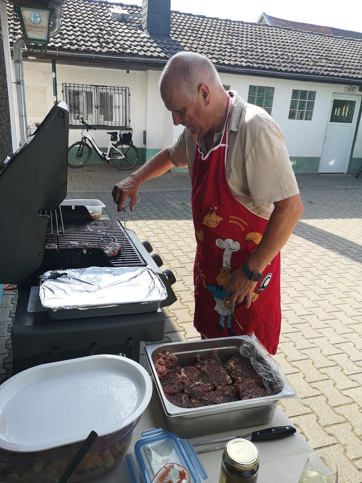 Nach etwas Boule zum Aufwärmen und diversen Umstellungen beim Fest-aufbau konnte gegen Abend bei tollem Wetter das Sommerfest beginnen. Circa 20 Abteilungsmitglieder hatten sich eingefunden um sich bei Essen und Trinken gemütlich über die bisherige Saison und auch über alles mögliche Sonstige auszuplaudern. Am Ende waren alle, auch dank der her-vorragenden Verköstigung (Super Vor- und Zubereitung von Peter), äußerst zufrieden und freuen sich schon auf die nächste Veranstaltung dieser Art.
