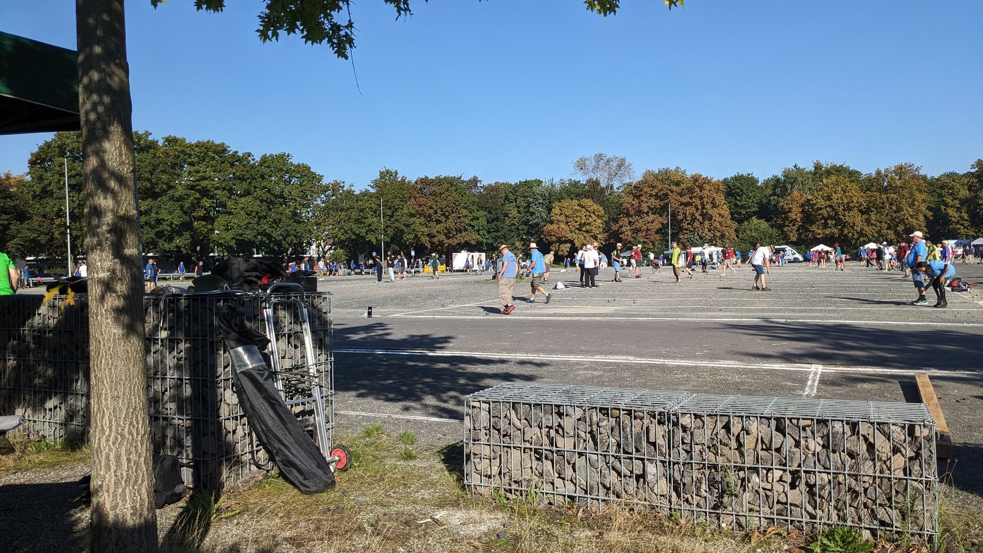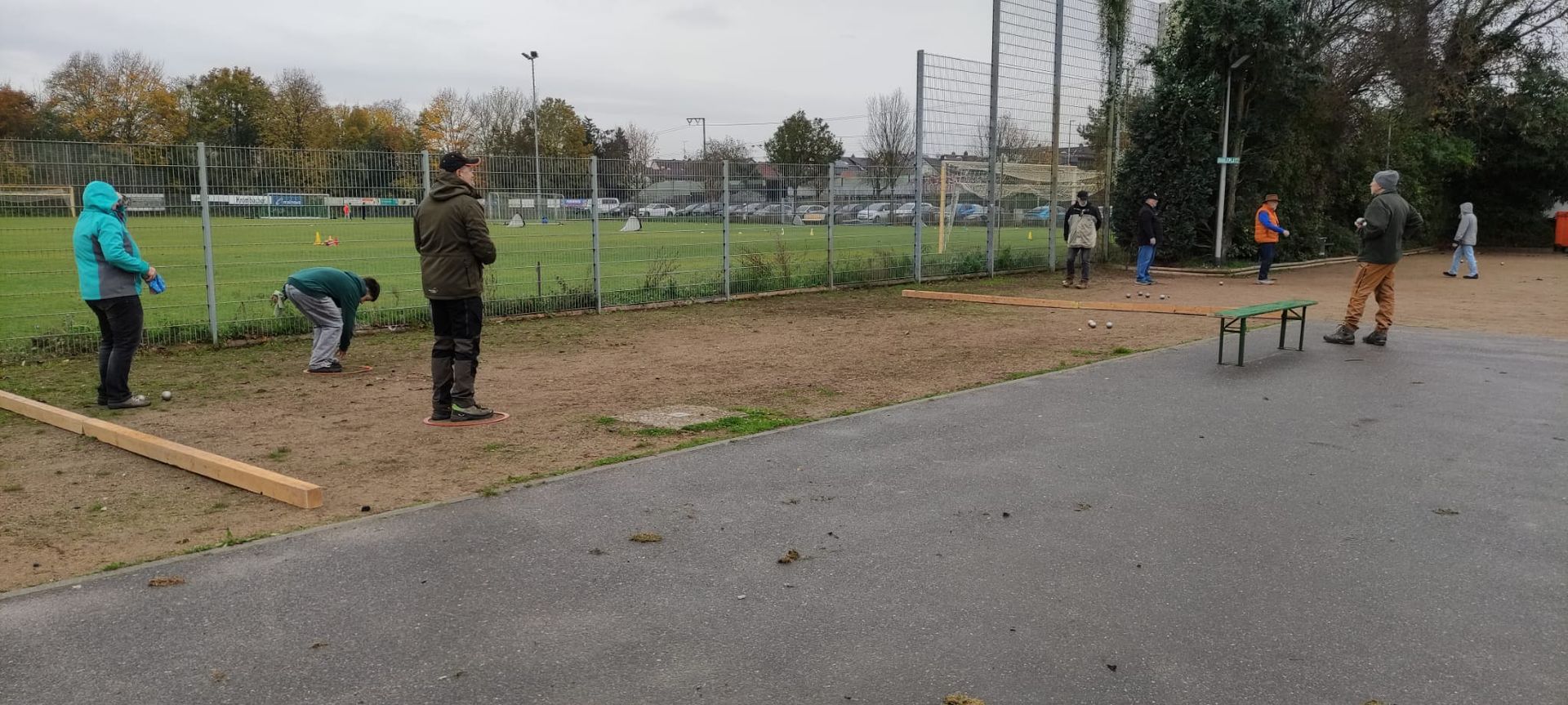 Die Anlage lag idyllisch in einer von Bäumen gesäumten Allee und bot ausreichend Platz für alle Begegnungen. Trotz der schönen Umgebung hatte das Spielfeld seine Tücken: Der Untergrund war teilweise steinig, was das Spiel erschwerte – die Kugeln ließen sich nur schwer kontrollieren und machten häufig nicht das, was sie sollten.